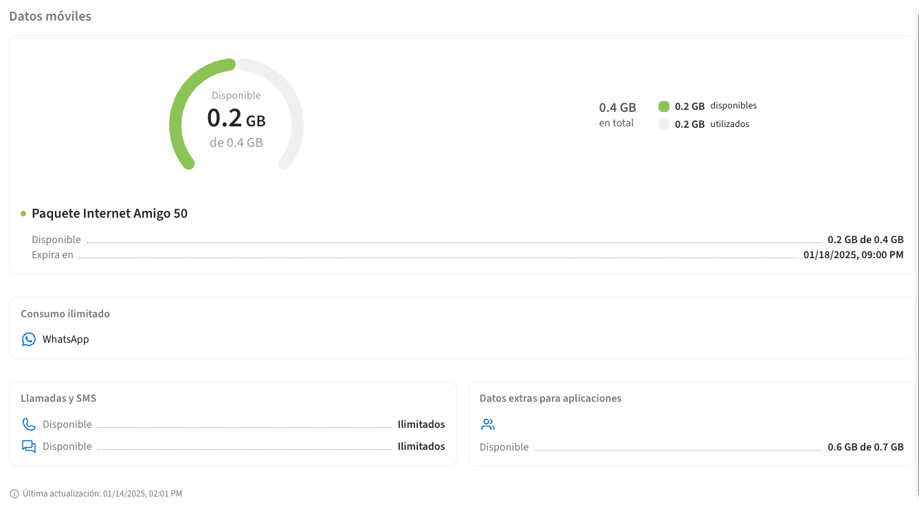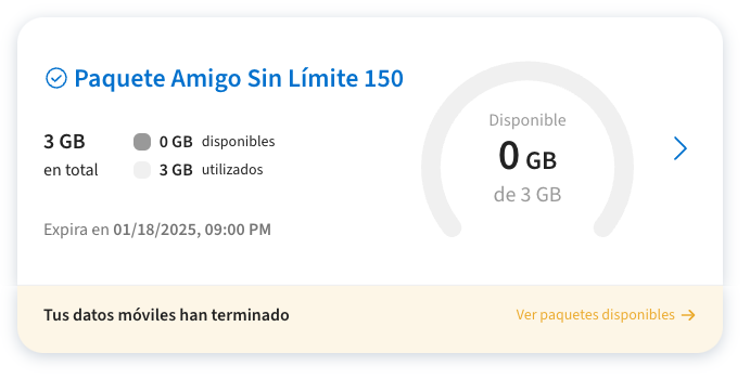 The Usage Summary component displays an overview of the customer’s consumption data, including total usage, available balance, and purchase recommendations when necessary.Integration